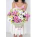 А букет из белых и розовых хризантем с ромашкой для утонченных натур,влюбленных в саму природу.