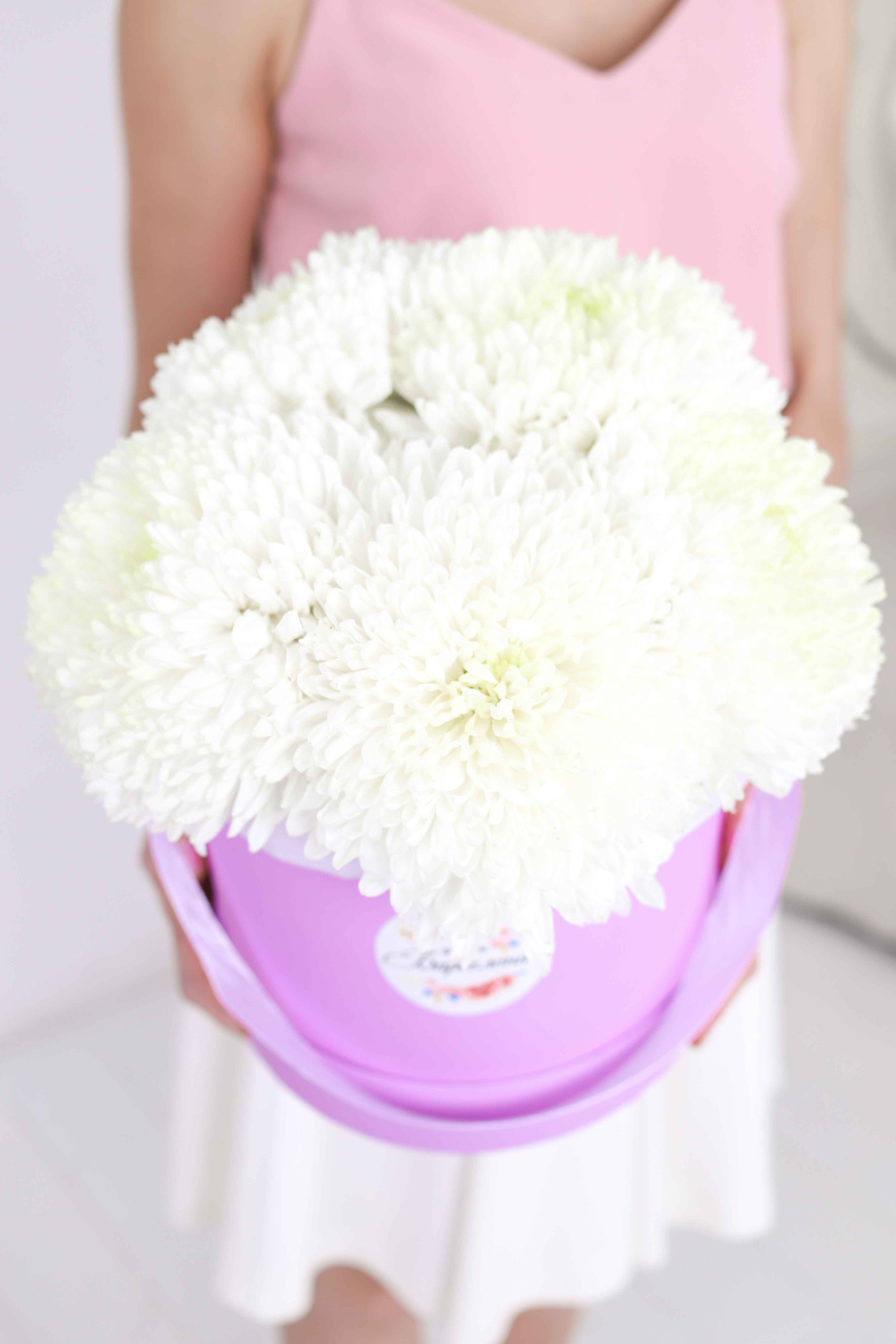 Количество-хризантема кустовая Кеннеди-5, Коробка (18 х 24 см.), Высота букета 28 см., Лента-атласная.