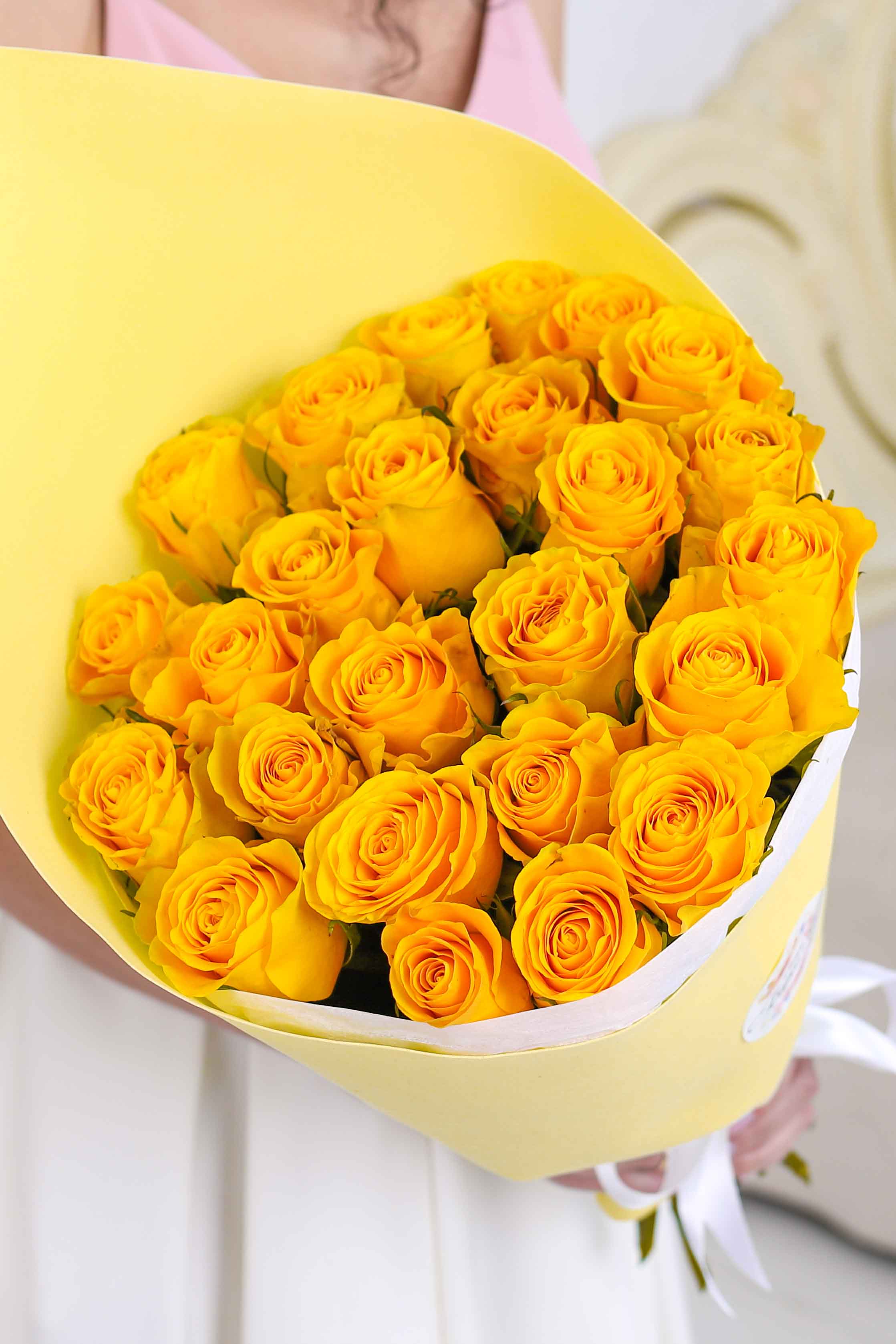 Количество-25, сорт-Brighton , Высота-50 см., упаковка-фоамиран белый, тишью, лента-широкая атласная.