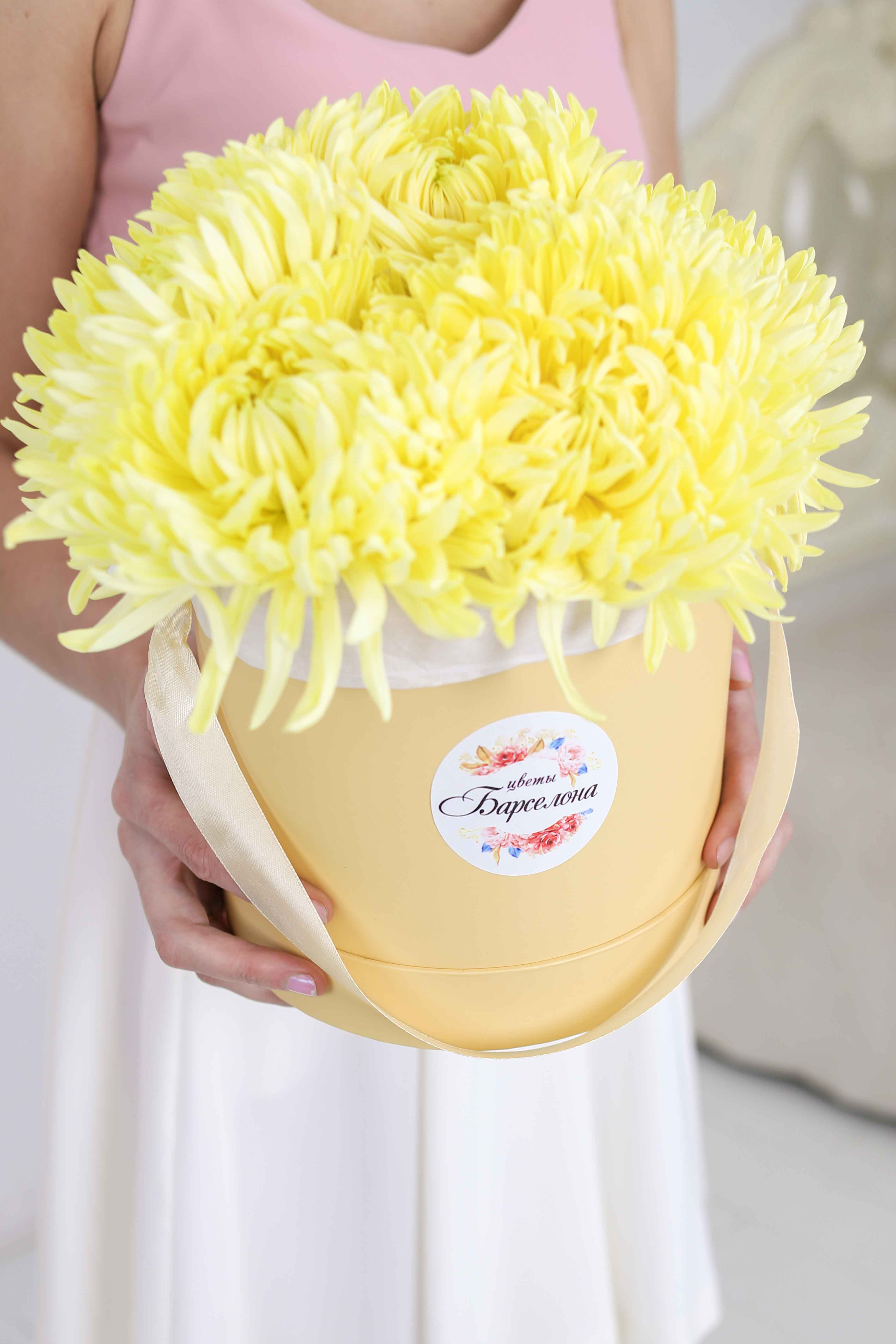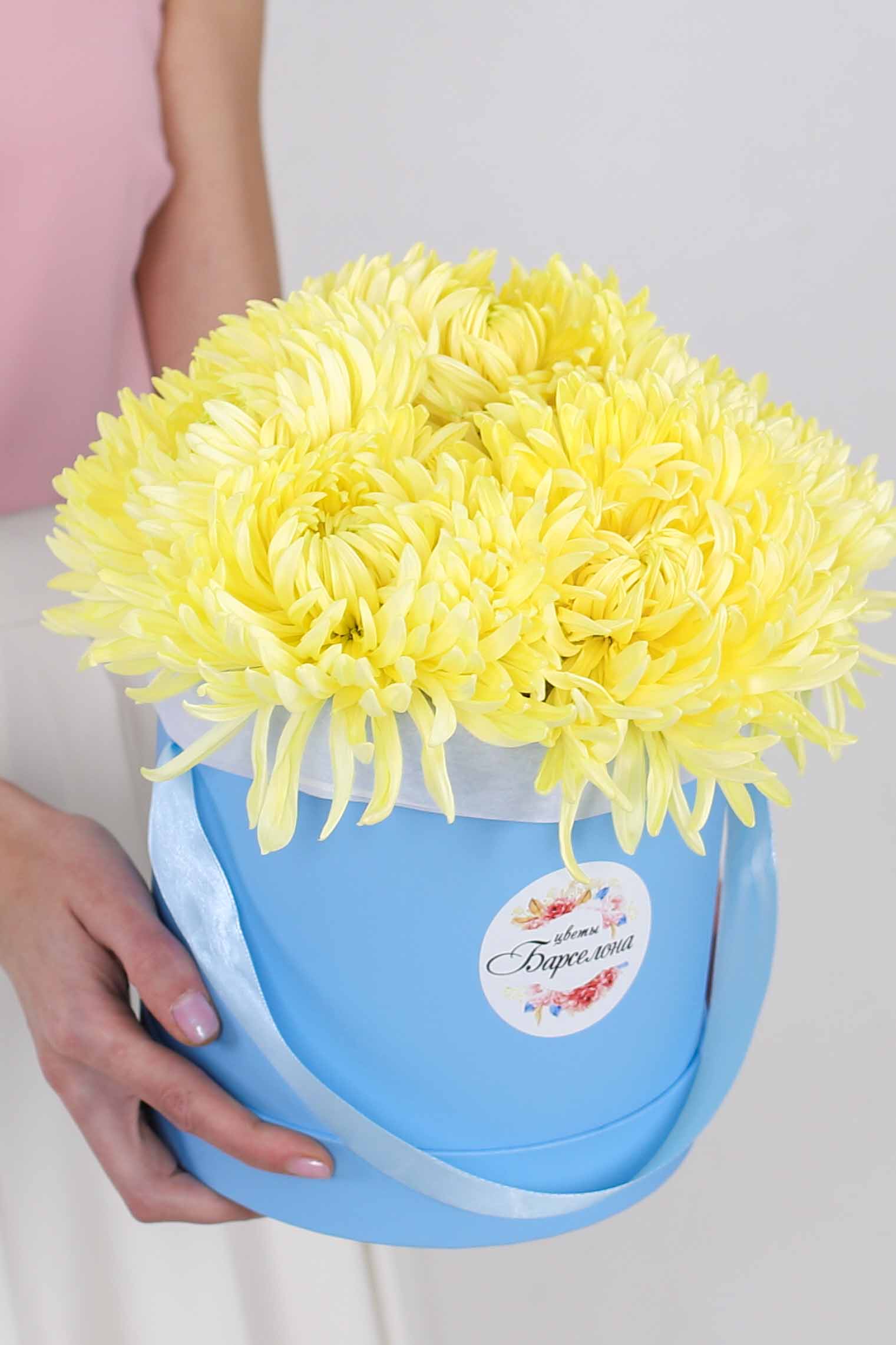 Количество-хризантема кустовая Кеннеди-5, Коробка (18 х 24 см.), Высота букета 28 см., Лента-атласная.