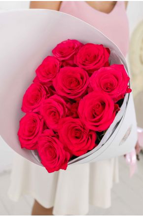 Количество-11, сорт-Эксплорер, Высота-50 см., упаковка-фоамиран белый, тишью, лента-широкая атласная.